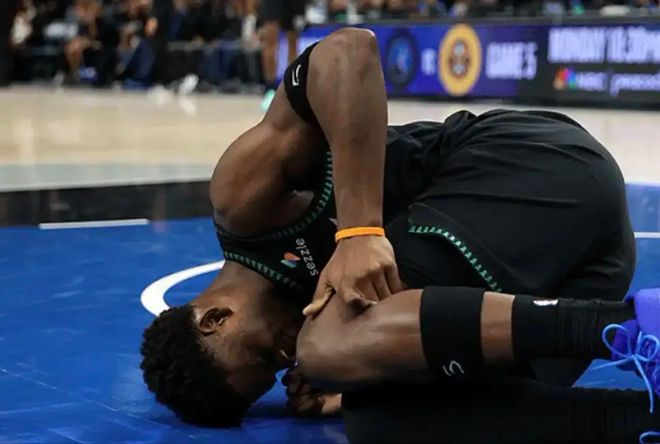 森林狼和掘金的系列赛第四战中,主场作战的森林狼接连遭遇噩耗,先是迪文琴佐无对抗伤到小腿,后经诊断确认为跟腱撕裂,接着爱德华兹在一次尝试封盖中,与卡梅隆-约翰逊在空中发生对抗,下落过程中左腿撑地,膝盖反关节扭转,场面极其惊险,华子随即痛苦大喊,最终被搀扶着带离赛场。尽管在连折两员大将的情况下,森林狼凭借多森姆的神奇发挥再下一城,但主队仍然只能用惨胜来形容,任谁也高兴不起来。